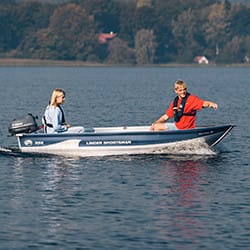 355 Sportsman är en lätthanterad och rolig roddbåt. Monterar du en motor på 8 hk så når båten en toppfart på hela 18 knop. Vill du ha ännu tystare gång – Sportsman 355 och en elmotor är en ypperlig kombination.