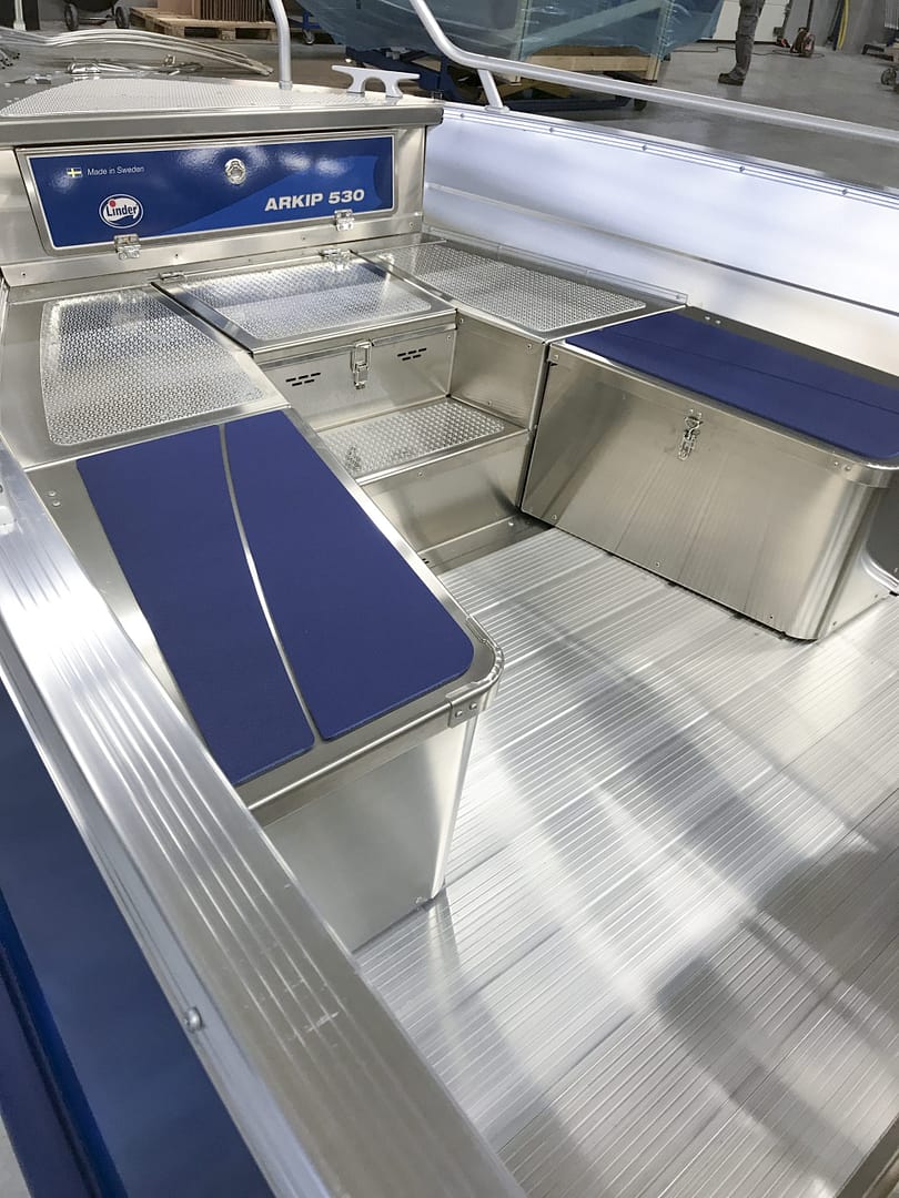 Ja, vi var lite väl blygsamma när vi döpte Arkip 530. Den mäter hela 576 centimeter enligt samma standard som våra kollegor använder till sina mått. ARKIP 530 – vår största självlänsande båt – väl anpassad för längre turer på havet. Designad för att erbjuda både trygghet och komfort. Med en längd på 576 cm, bredd på 214 cm och höga fribord är den en stor tystgående motorbåt med plats för upptill 6 personer som erbjuder rymliga sittbrunnar både i för och akter.